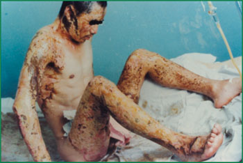 1、 患者,男,36歲,液態(tài)黃磷燒傷,面積80%(深Ⅱ度65%,Ⅲ度15%)