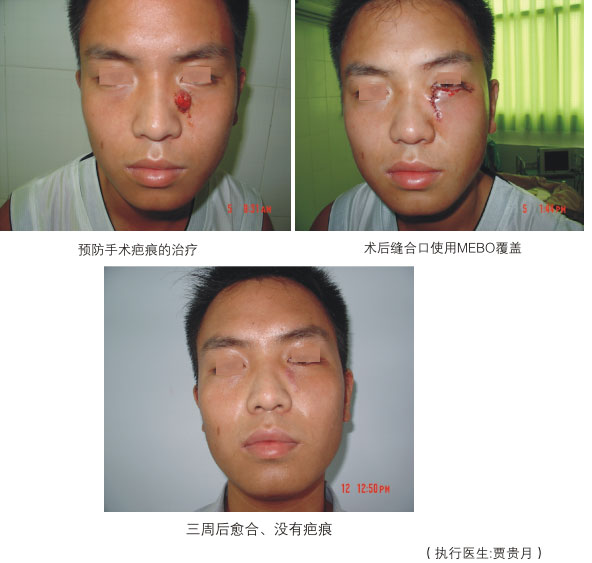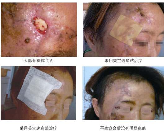 地震期間,因高處掉落的磚、石砸傷頭部,導致皮膚軟組織缺損,在這些地震傷員的救治中,直接用再生方法,使大量的皮膚軟組織缺損的創(chuàng)傷口才再生愈合,不需植皮。(參見圖3)