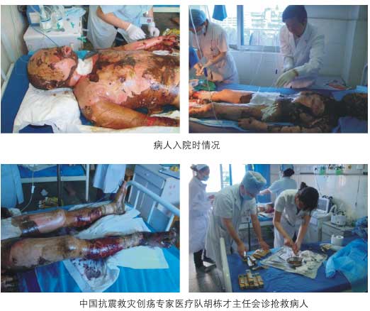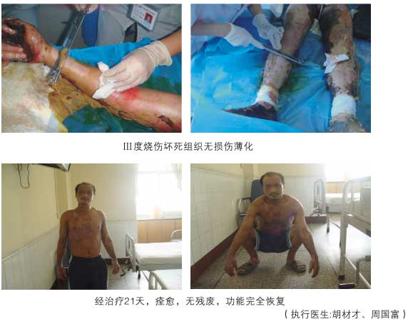 2008年四川地震再生復原治療的開放性創(chuàng)傷患者152例全部再生愈合(不包括小的傷口),沒有一例截肢,如某些按西方專家提出截肢方案準備截肢的患者,改用再生療法,沒有截肢,并在兩周后患者創(chuàng)面再生愈合出院。同時,我們的醫(yī)療組織承擔全部燒傷患者的救治,最大深度燒傷面積99%,全部皮膚再生,零死亡,零殘廢。
