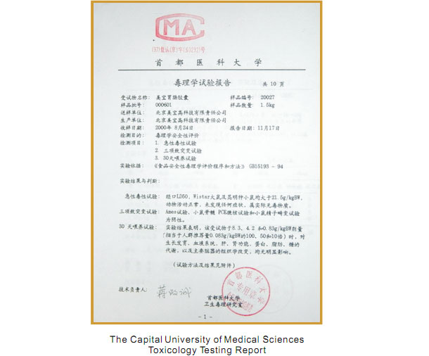 According to the test performed by Stimulant Detect Center of Olympics Committee, MEBO Gastrointestinal Capsule does not contain any hormone forbidden to be administered.