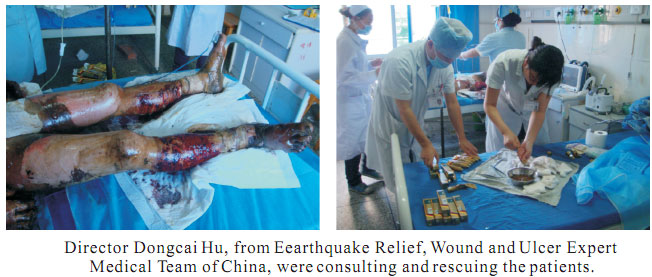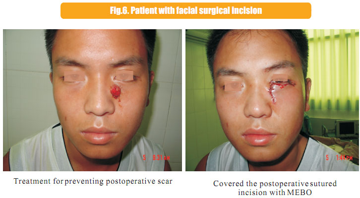 Many cases of skin and soft tissue damage and defect were caused by the bricks or stones dropping off from the high place during the earthquake time. During the treatment of these wounds, the regenerative medicine and therapy was applied to fulfill regenerative healing of wounds on the damaged or defected skin and soft tissues without skin grafting. (Fig.3)
