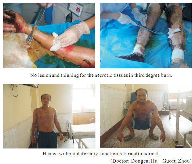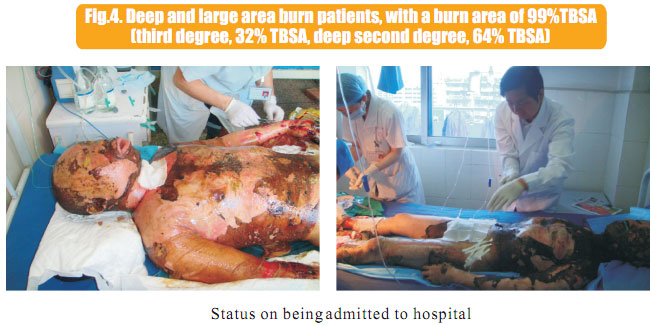 Meanwhile, our team took on all the rescue work for burn patients, the largest area of burn is 99% of TBSA, all skins regenerated, no death and deformity.  See the following figs.