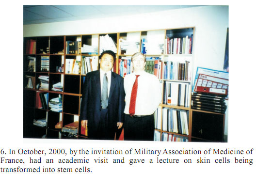 To emphasize its importance for scientific research all over the world, in the website of KARGER: "revolutionary and amazing"was commented.  As a result, this book evoked a worldwide repercussion; some famous life scientists from Germany, Britain, and the United States came to China to visit us on purpose for discussion about stem cell research.  Swedish National Television Station entrusted by Swedish National Committee of Sciences came to China especially for a visit.  Stanford University of United States invited me especially for the special subject lecture.  Some Professors of dermatology from Harvard University of the United States especially came to my home to discuss academic issues (some photos about academic communications in that time).