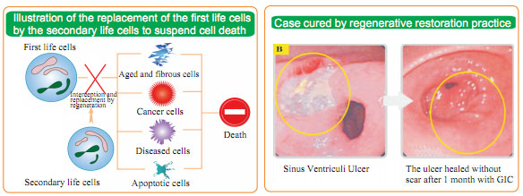 The main focus in our study is to explore further the secondary life cells, especially the origin of these cells.  We believe these cells were left behind during the course of embryo development.  When embryonic cells divided into two, one of which continues to develop into human body; the other ceased and remained in hibernating state till the death of the human body.  It has been generally accepted in the scientific field that these hibernating cells are trash cells.  On the contrary, we have determined these cells are not only useful, but also the secondary life cells, i.e. the copy cells which can further develop under right conditions.  When aging, injury, cancer, or apoptosis occur in human somatic cells, these copy cells will be activated and play a role in renewing those diseased cells in situ.  Here, I will not detail the procedure of the activation of these copy cells; in stead, I want to emphasize one of the human instincts --- regeneration, which is available throughout the life but never displayed.  No scientist worldwide can tell how these cells play their role, for some never succeeded in achieving regeneration while some others just ignored it.  That’s why no one even touched upon the study of these cells.  It might be the same case with the discovery of antibiotics; although it is also a natural existence, no one would think about it before its discovery.  Even till now, there are still countless mysteries remaining to be solved in the nature.  If we haven’t studied burns, we wouldn’t have found the skin regeneration; if we hadn’t revealed the mystery of skin regeneration, we wouldn’t have considered the study on GI tract regeneration and known the possibility of GI tract regeneration; if GI tract regeneration hadn’t been realized; internal organ regeneration like liver regeneration wouldn’t have been studied and succeeded.  Therefore, the human body regenerative restoration is closely related with each other, and the secondary life cells are the key, because each of these cells contains the entire set of information of human body and thus can structurally repair injured or defected tissues and organs completely to achieve human body regeneration.  It is our work to feed and raise these cells rightly so that they can be activated at any time of need to replace the original abnormal cells and regenerate human body.  For example, by severed finger regeneration, we don’t refers to the wound healing, instead, we highlight the regenerative restoration of the lost finger part within the same genetic system as the original human body without any discrepancy in life characters.