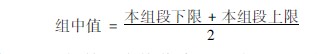 Md為中位數(shù),L為中位數(shù)所在組的下限,i為中位數(shù)所在組的組距,fmd為中位數(shù)所在組的頻數(shù),n為總額數(shù),c為中位數(shù)所在組以前的累計(jì)頻數(shù),累計(jì)頻數(shù)為每組例數(shù)與其之前各組例數(shù)之和。