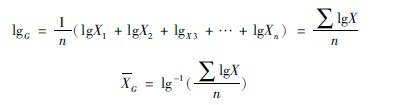 G為幾何均數(shù),X1,X2…為各變量值,n為總頻數(shù)。上式可以寫成對(duì)數(shù)形公式(365)和加權(quán)公式(366):