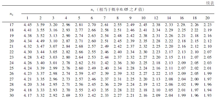 5結(jié)果判斷:本例自由度n1為3,n2為24,查F表:F005=301,F(xiàn)001=472,本例F=356,大于F005=301,但小于F001=472,即005>P>001。
