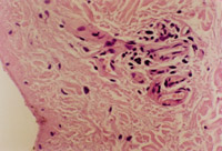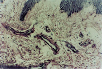 5-3-8 同上,真皮層小血管周圍網(wǎng)狀纖維呈黑色染色  HE×40