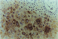 5-3-9 MEBT/MEBO治療30天,細胞角質素AE3呈陽性。(說明患者燒傷創(chuàng)面是自我再生修復) HE×20