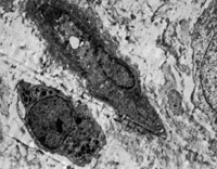 5-3-19 MEBT/MEBO治療20天,示纖維母細胞,及與基底膜半橋粒連接的上皮細胞 TEM×3000