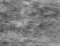 經(jīng)MEBT/MEBO治療20天,電鏡觀察到基底細胞層與纖維母細胞之間的半橋粒連接,同時可見纖維母細胞內(nèi)粗面內(nèi)質網(wǎng)結構和線粒體增生活躍(圖5-3-19~5-3-21)。 MEBT/MEBO治療30天后,上皮組織再生修復,已基本完成,創(chuàng)面組織切片顯示膠原纖維成熟,排列整齊(圖5-3-22),直徑為0.1~0.5祄,并可見明暗相間周期性橫紋(64nm),未見到膠原纖維扭曲和呈旋渦、菜花等病理形態(tài)。