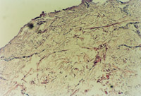 3-23 對其“皮點(diǎn)”進(jìn)行組織學(xué)檢查,該組織為從皮下組織中再生出的微血管、膠原組織、表皮細(xì)胞組織組成的再生皮膚組織團(tuán)