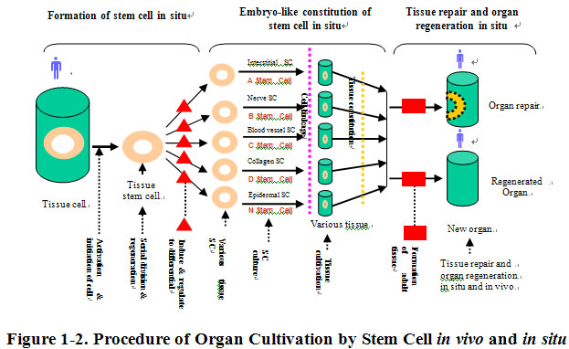 Despite continuous progresses in science and technology, few attempts have been made to successfully develop functional tissue or organs from human cells. The exception is our embryology study and our work on the adult stem cells in vivo and in situ.  Almost one decade ago, American researchers tried to establish a new life science system using various approaches and electronic technologies, but ended up only describing an ideal blueprint for the human genome. However, without sufficient understanding about cells, the genomic research that only focuses on life substance within the cell is of little applicable value since genes play their roles under the assistance of the function of cells.  It is true that genomic research is very important in the life science, but such research will accomplish nothing if it is removed from cellular biochemistry and cytology.  While an important approach to life science research, gene technology proves inadequate to solve any health problem or cure any disease unless combined with appropriate use of cytology focused on harnessing the function of the cell, life’s smallest unit.