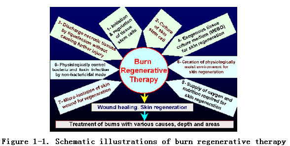 As early as before 1989, we have matured burns skin regeneration therapy that was derived from successful burns treatment in clinic practice. Subsequent to burns, the human body has an instinct to initiate the regenerative potential of stem cells in vivo and in situ.  However, the typical use of disinfectants and antibacterial agents on burns wounds makes it impossible to create a physiological environment sufficient to initiate and activate stem cell activation in burns wounds. The goal was to maintain and promote stem cells in order that they might proliferate and differentiate to further repair and clone organs.