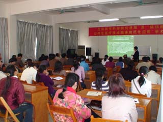 中國中西醫(yī)結合學會燒傷專業(yè)委員會常委、北京美寶燒傷創(chuàng)瘍研究所副所長、醫(yī)療部主任王洪生親自為培訓班授課。在為培訓班授課期間,王洪生主任采用多媒體教學方式,圖文并茂,利用大量詳實的臨床病例圖片資料,深入淺出的向與會的醫(yī)護人員展示了我國著名生命科學家,醫(yī)學家徐榮祥教授近年來在生命再生科學領域的研究新進展及所取得的重大實驗和臨床研究成果;并通報了徐榮祥教授在生命科學研究領域于2005年12月6日在美國獲得的三大發(fā)明專利;然后,重點向與會學員講述了燒傷皮膚原位再生醫(yī)療技術在燒傷臨床中的規(guī)范化應用及在多學科的臨床應用。