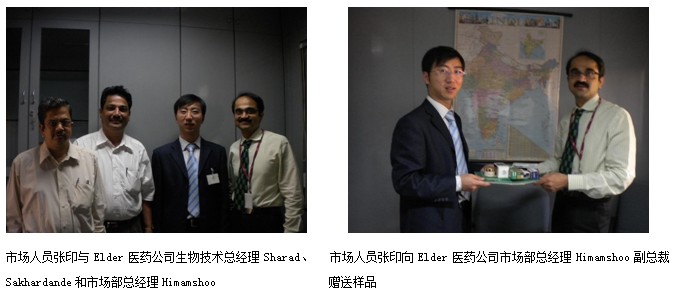 3月3日上午,美寶國際集團國際部市場人員張印在Elder醫(yī)藥公司生物科技部總經(jīng)理Sharad的陪同下,來到Elder醫(yī)藥公司總部。Elder醫(yī)藥公司是印度第29大醫(yī)藥上市公司,該公司擁有八個藥廠,分別分布在印度和尼泊爾。該公司的在職員工有3500余人,其中市場銷售人員為1500人,公司年銷售額為1.8億美金。在印度醫(yī)藥公司中,Elder醫(yī)藥公司是首屈一指的經(jīng)營創(chuàng)瘍類藥品的公司。上午,張印與副總裁(科研)Dr. Sakhardande進行了會晤,雙方共同討論了目前臨床上治療燒傷創(chuàng)瘍的技術產(chǎn)品。隨后,張印向Dr. Sakhardande展示了運用美寶原位再生復原技術和再生系列產(chǎn)品在治療燒傷、創(chuàng)瘍方面所取得的良好臨床治療效果,并簡要介紹了燒傷再生醫(yī)學和原位再生復原技術的基本理論。副總裁Dr. Sakhardande對原位再生醫(yī)療技術的臨床治療效果十分震驚,贊嘆不已,他表示一定要來中國實地了解和學習原位再生復原技術,將其盡快引進印度各醫(yī)院,造福印度人民。下午,張印在Elder醫(yī)藥公司的會議室向生物技術總經(jīng)理Sharad、副總裁Dr. Sakhardande和市場部總經(jīng)理Himamshoo等人詳細介紹了美寶國際集團的概況、原位再生復原技術、再生系列產(chǎn)品和國際市場的發(fā)展情況。在場所有人員對燒傷再生醫(yī)學和再生產(chǎn)品都表現(xiàn)出了濃厚的情趣,并希望能夠盡快與美寶合作。