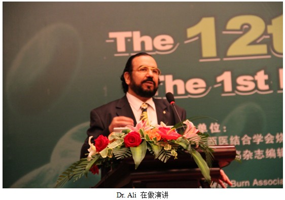 第一位演講的是來自阿聯(lián)酋迪拜的Ali Al-Numairy 醫(yī)生,他是海灣??漆t(yī)院整形外科主任,國際外科醫(yī)師協(xié)會副主席(阿聯(lián)酋地區(qū)主席)20年再生醫(yī)療技術(shù)使用經(jīng)驗(yàn)是再生醫(yī)療技術(shù)的忠實(shí)粉絲。 他演講的題目是再生醫(yī)療技術(shù)在創(chuàng)面愈合中的作用。Ali 教授從創(chuàng)面愈合的機(jī)理,疤痕形成的原因引出了創(chuàng)面愈合所需的理想條件與環(huán)境,進(jìn)而指出再生醫(yī)療技術(shù)是唯一個(gè)可以滿足創(chuàng)面生理愈合所有條件的技術(shù),同時(shí)跟強(qiáng)調(diào)這項(xiàng)技術(shù)正符合了21世紀(jì)燒傷治療的最新理念既:燒傷的治療不僅僅局限于挽救患者生命,更重要的是如何更有效的降低燒傷并發(fā)癥帶來的心理負(fù)擔(dān)。接著他又詳細(xì)全面的介紹了再生醫(yī)療技術(shù)作用機(jī)理,以及常用換藥方法.根據(jù)他20多年的臨床使用經(jīng)驗(yàn),再生醫(yī)療技術(shù)適應(yīng)癥包括:各類型、程度及階段的燒傷,紫外線損傷;各種類型創(chuàng)傷以及激光術(shù)后創(chuàng)面等等。隨后Dr. Ali 通過大量的病例圖片生動形象的展示了 再生醫(yī)療技術(shù)在燒傷、創(chuàng)瘍、整形美容等多種創(chuàng)面的應(yīng)用。