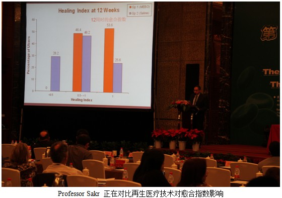 埃及亞歷山大大學(xué)醫(yī)學(xué)系外科教授、國際外科醫(yī)師學(xué)會會員Mahmoud F. Sakr 醫(yī)生也是一位再生醫(yī)療技術(shù)臨   床經(jīng)驗(yàn)豐富的專家。他演講的題目為:濕潤燒傷膏在糖尿病足愈合過程中的作用。首先 Sakr 教授詳細(xì)的分析了糖尿病潰瘍發(fā)病的機(jī)理,分類以及常用治療方法。同時(shí)也指出,糖尿病患者潰瘍發(fā)病率居高不下的原因以及為何糖尿病潰瘍是醫(yī)生最棘手的問題之一。通常對于嚴(yán)重糖尿病足潰瘍患者而言,截肢往往是不得不選擇的保住性命的辦法。而再生醫(yī)療技術(shù)卻能夠在常規(guī)糖尿病治療前提下,治愈糖尿病潰瘍創(chuàng)面尤其是經(jīng)久不愈的糖尿病創(chuàng)面而避免截肢,很大程度上減少了患者截肢后帶來的生理與心里上的創(chuàng)傷。再生醫(yī)療技術(shù)不僅僅能夠明顯減小潰瘍表面積同時(shí)也縮短了創(chuàng)面愈合時(shí)間。是治療糖尿病足的不二之選。