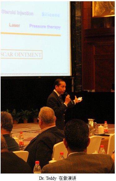 隨后,印尼Cipto Mangunkusumo整形外科醫(yī)生、印尼臨床教育培訓(xùn)中心主席Teddy O.H. Prasetyono 以瘢痕為主的愈合為題介紹了再生醫(yī)療技術(shù)在整形修復(fù)外科的使用經(jīng)驗(yàn)。他生動形象的演講深深吸引了與會代表,最后總結(jié)道:此項(xiàng)技術(shù)必將成為未來燒傷治療的首選方法。