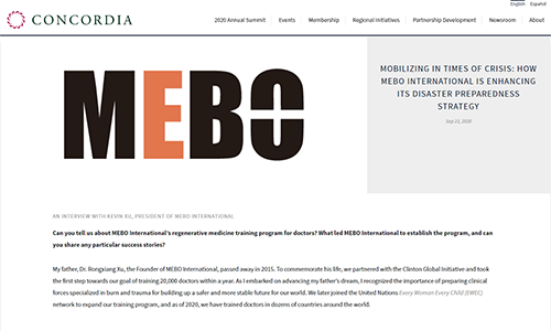 Concordia組織訪談中,徐鵬就美寶國際在世界范圍內(nèi)開展的再生醫(yī)學(xué)培訓(xùn)計劃進(jìn)行了系統(tǒng)介紹,特別強調(diào)在面對世界問題時,通過與非營利組織、與世界各地政府建立伙伴關(guān)系,應(yīng)對不同國家或地區(qū)的文化和監(jiān)管體系的經(jīng)驗。