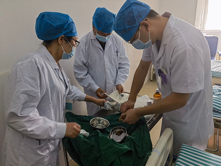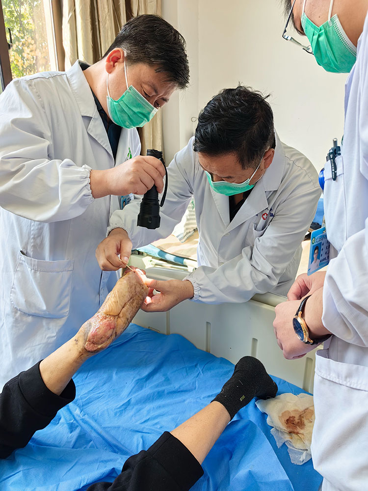 趙瑞慶教授應革命老區(qū)河北省平山縣中醫(yī)院之邀,為兩例糖尿病足患者和一例足背部感染患者進行會診。
