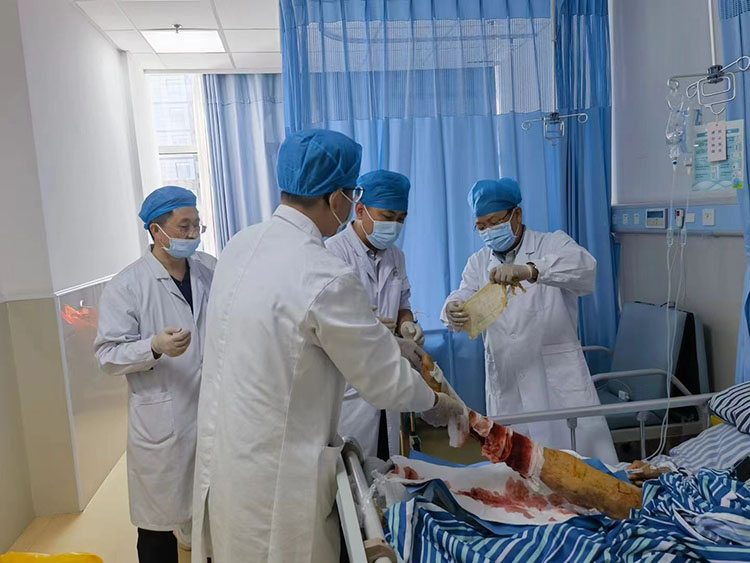 9月23日,《中國燒傷創(chuàng)瘍雜志》常務編委、燒傷創(chuàng)瘍再生醫(yī)療技術臨床專家趙瑞慶教授,應如東中醫(yī)院之邀,會診1例因車禍造成右下肢脛骨骨折、右下肢廣泛皮膚缺損、右足跟皮膚干性壞死的老年患者。全程采用創(chuàng)面采用再生技術治療,并制定了下一步的治療方案,受到當?shù)蒯t(yī)務人員的稱贊及家屬的廣泛認可。