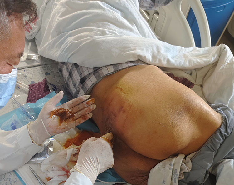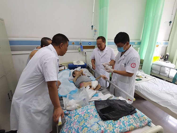 7月12日,應(yīng)山西國藥同煤二醫(yī)院邀請,《中國燒傷創(chuàng)瘍雜志》常務(wù)編委、燒傷創(chuàng)瘍再生醫(yī)療技術(shù)臨床專家趙瑞慶在該醫(yī)院對收治的19例慢創(chuàng)患者進(jìn)行逐一查房檢查,針對其中8例患者親自示范處置演示,在院期間還為一名截癱礦工行骶尾部壓瘡皮簇種植術(shù)。