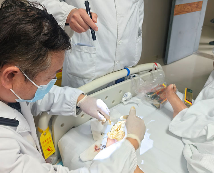 2025年10月30日,《中國燒傷創(chuàng)瘍雜志》編委、燒傷創(chuàng)瘍再生醫(yī)療技術臨床專家張強主任應邀前往定遠縣總醫(yī)院創(chuàng)面修復科,會診多例糖足和創(chuàng)面患者。張主任深入病房指導并示范再生醫(yī)療技術規(guī)范化臨床應用,結合患者病情制定后續(xù)治療方案,受到醫(yī)護人員高度贊賞。