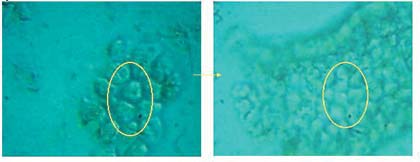 取出小鼠的骨髓祖細(xì)胞,放入根據(jù)骨髓特性調(diào)整后的美寶培養(yǎng)液中,進(jìn)行培養(yǎng),結(jié)果,骨髓祖細(xì)胞具有明顯的增殖和分化,當(dāng)增殖分化到一定量時(shí),增殖分化的細(xì)胞則連接,逐漸形成有多種形態(tài)細(xì)胞組成的細(xì)胞組織團(tuán)。另一實(shí)驗(yàn),在前實(shí)驗(yàn)的基礎(chǔ)上同時(shí)放入白血病細(xì)胞,其白血病細(xì)胞自動(dòng)停止生長(zhǎng),而骨髓祖細(xì)胞繼續(xù)增殖分化。對(duì)照組顯示,骨髓祖細(xì)胞全部死亡,白血病細(xì)胞泛濫生長(zhǎng)。(其結(jié)果見(jiàn)圖片 圖7.8-7.12)