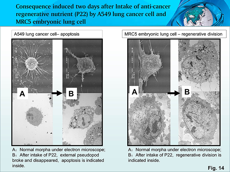 Core mechanism: The regenerative anti-cancer nutrient composition can promote the apoptosis of cancer cells and simultaneously can promote the metabolism and initiate the regenerative capacity of normal cells. Attached below are results of experimental research (Fig. 14, 15).
