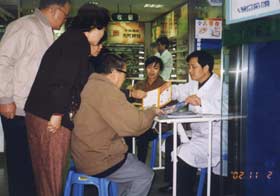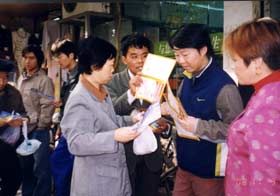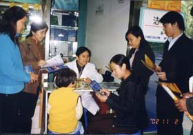 上海市復(fù)星大藥房包括30余家連鎖藥店,我們選中其中一家公交車站附近的藥店,在藥店里布展臺(tái)咨詢,并在藥店門外及公交車站向過往行人發(fā)放了宣傳資料,之后我們又來到普陀區(qū)中心醫(yī)院門口對(duì)前來看病的病人和家屬進(jìn)行了產(chǎn)品宣傳,吸引了很多過往行人。
