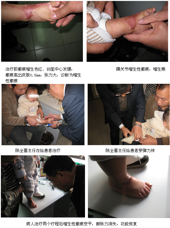 粘連、蹼狀瘢痕的治療是臨床上一個(gè)棘手問(wèn)題,其方法繁多,臨床都是采用手術(shù)療法治療,通過(guò)保守治療傷后粘連性瘢痕的報(bào)道少之又少。隨著再生醫(yī)療技術(shù)的發(fā)展及美寶疤痕軟膏的臨床應(yīng)用解決了深度燒傷愈后創(chuàng)面的疤痕預(yù)防、保健和治療的技術(shù)難題,以上醫(yī)院通過(guò)應(yīng)用原位再生醫(yī)療技術(shù)和美寶疤痕軟膏治療攣縮性瘢痕、粘連性瘢痕、增生性瘢痕,在陳全喜主任精心的指導(dǎo)下,均取得了顯著的療效,只要堅(jiān)持正確的療程和方法進(jìn)行應(yīng)用,一般都不需手術(shù)或大大縮小手術(shù)范圍,隨著病程轉(zhuǎn)歸大部分增生性疤痕都能自行消退,通過(guò)大量臨床實(shí)踐效果滿(mǎn)意,再次呼吁對(duì)深度燒傷愈后患者應(yīng)用美疤痕軟膏作為疤痕的預(yù)防與治療,應(yīng)列為常規(guī),以減少疤痕增生或致殘。