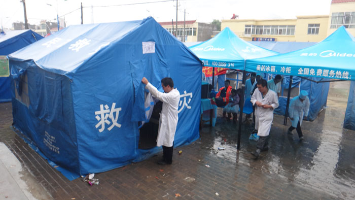 雨依然越下越大,雨水不斷涌進帳篷,天氣變得越來越冷,醫(yī)療隊員忙著轉(zhuǎn)移救災醫(yī)療物資,防止被雨水泡濕;醫(yī)療隊員忙著會診,忙著救治,忙著包扎一個個傷口。屋外的清冷掩不住那一顆顆炙熱的心,不斷加大的雨水,沖不走“再生”的奇跡,不在抗震救災一線卻心系一線的美寶員工虔誠的為災區(qū)人民祈鑄祝福……。