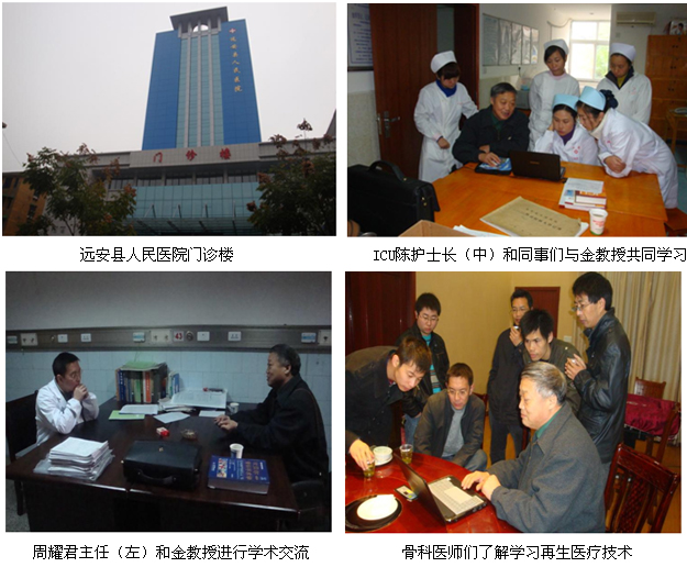 2010年12月17日,中國中西醫(yī)結(jié)合學(xué)會燒傷專業(yè)委員會金黨軍教授來到湖北省宜昌遠(yuǎn)安縣人民醫(yī)院,分別走訪了該院的ICU和骨外科。該院骨科周耀君主任和ICU陳護(hù)士長分別組織科室醫(yī)護(hù)人員向金教授學(xué)習(xí)了“原位再生復(fù)原醫(yī)療技術(shù)在創(chuàng)傷潰瘍?nèi)殳彽葎?chuàng)面的臨床應(yīng)用”,金教授向大家介紹了原位再生醫(yī)療技術(shù)要點(diǎn),規(guī)范創(chuàng)面換藥處理方式和原則,以及應(yīng)用該技術(shù)對多發(fā)性特大褥瘡,糖尿病足,擠壓傷等病例的治療方法和注意事項(xiàng)。隨后,醫(yī)護(hù)人員就實(shí)際工作中遇到的問題與金教授進(jìn)行了交流,并表示在以后治療過程中,將規(guī)范換藥技術(shù),提高護(hù)理質(zhì)量。
