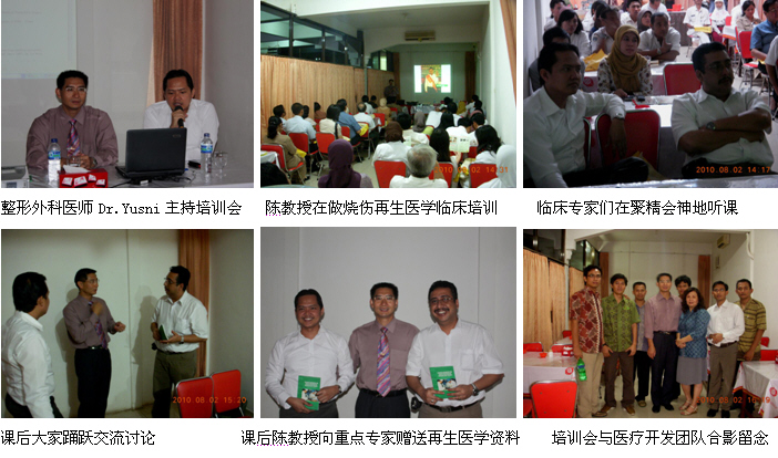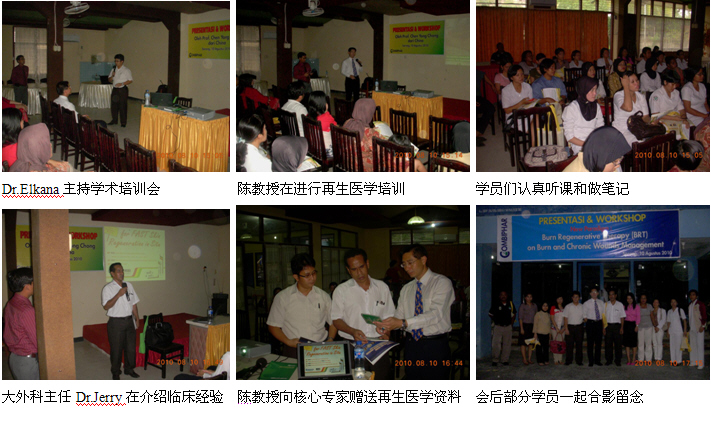 同時,經(jīng)過精心策劃和安排,2010年8月1日,剛剛結(jié)束馬來西亞醫(yī)療開發(fā)與維護(hù)工作的中國燒傷創(chuàng)瘍科技中心臨床部主任、北京榮祥再生醫(yī)學(xué)研究所副所長、北京中西醫(yī)結(jié)合學(xué)會燒傷專業(yè)委員會副主任委員陳永翀教授顧不上休息,便馬不停蹄地趕往印度尼西亞(印尼),在Combiphar 負(fù)責(zé)醫(yī)療開發(fā)的Mr. Kirastha 的組織、安排和全程陪同下,展開了印尼2010年的第二輪醫(yī)療開發(fā)工作。在這次的醫(yī)療開發(fā)工作中,能夠很好地和各級醫(yī)師學(xué)會或醫(yī)院緊密合作,有效地提高了培訓(xùn)班的組織能力、影響力、學(xué)術(shù)水平等,由于有繼教學(xué)分而且培訓(xùn)內(nèi)容新穎、實用,而很受臨床醫(yī)護(hù)人員的歡迎,為醫(yī)療開發(fā)摸索出了一條很好的路子。在這次的醫(yī)療開發(fā)過程中,通過這種模式成功參加了印尼全國的燒傷整形外科大會,舉辦了省級培訓(xùn)班2期,市級培訓(xùn)班3期,院內(nèi)培訓(xùn)班2期,重點專家學(xué)術(shù)交流5次,培訓(xùn)了燒傷、整形、普通外科、皮膚科、骨科、婦產(chǎn)科醫(yī)師和護(hù)士690多名,培訓(xùn)市場醫(yī)療開發(fā)人員19名,成功開發(fā)了不少于5家大型政府教學(xué)醫(yī)院,會診、指導(dǎo)1例大面積特重度燒傷和另外5例創(chuàng)瘍患者的治療。由于開發(fā)的路子對,達(dá)到了高效率的開發(fā)效果。下面以簡短的圖文方式與大家分享成功的經(jīng)驗。