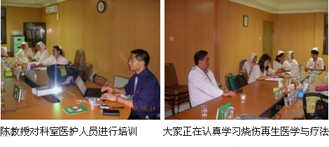7、8月13日上午9時,由醫(yī)師學(xué)會主辦的Jambi市級燒傷再生醫(yī)學(xué)臨床培訓(xùn)班(省級繼續(xù)教育項目,學(xué)分6分)在Raden Mattaher hospital的學(xué)術(shù)報告廳里舉辦,來自全是主要的4家政府醫(yī)院和其它10多家私營醫(yī)院的80多名臨床醫(yī)師、護(hù)士參加了這次培訓(xùn)會。培訓(xùn)會由Raden Mattaher hospital副院長Dr.Imanuel主持,醫(yī)院大外科主任Dr. Aziz介紹了應(yīng)用MEBO治療褥瘡的臨床經(jīng)驗,陳教授則應(yīng)邀作了“燒傷再生醫(yī)學(xué)與療法在燒傷、創(chuàng)瘍疾病治療的臨床規(guī)范應(yīng)用”的培訓(xùn)演講,很受大家的歡迎,達(dá)到了較理想的培訓(xùn)效果。