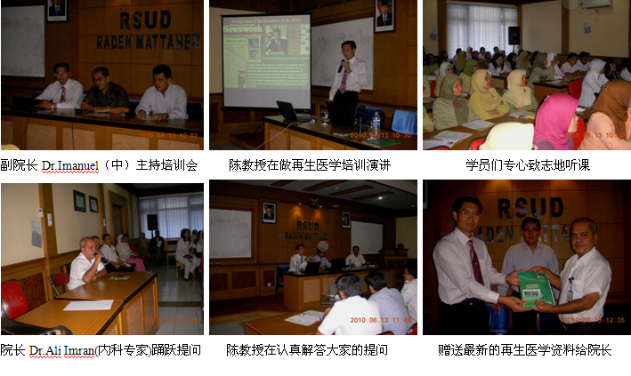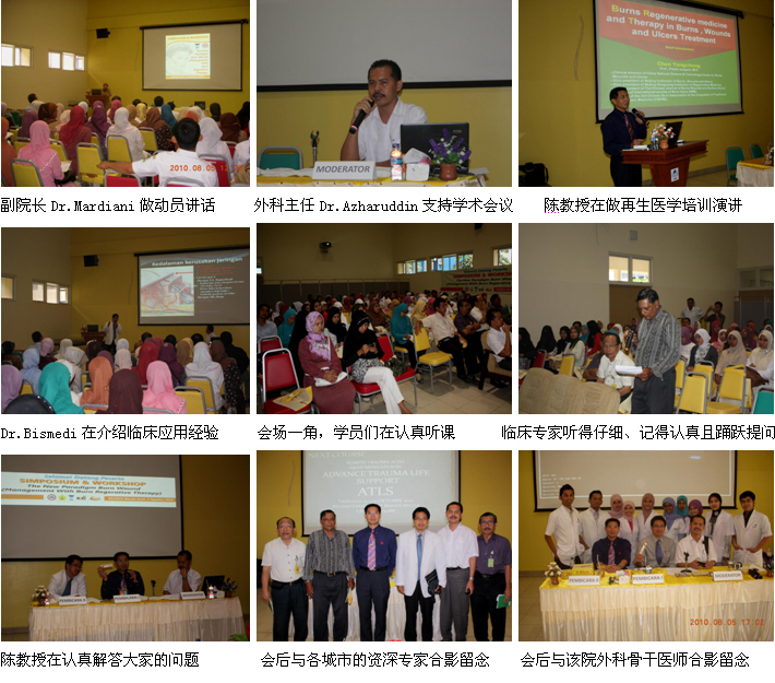 4、8月5日上午10時,由印尼醫(yī)師學(xué)會主辦、Zainul Abidin Hospital承辦的Banda Aceh省級燒傷再生醫(yī)學(xué)臨床培訓(xùn)班(省級繼續(xù)教育項目,學(xué)分12分)在Zainul Abidin Hospital學(xué)術(shù)報告廳里成功舉辦。Zainul Abidin Hospital是當(dāng)?shù)刈畲蟮慕虒W(xué)醫(yī)院,500病床,醫(yī)院正在計劃利用再生醫(yī)學(xué)技術(shù)的優(yōu)勢籌建燒傷中心。來自全省3個主要城市的5家政府醫(yī)院和其它20多家私營醫(yī)院的120多名臨床醫(yī)師、護(hù)士參加了這次培訓(xùn)會。該院副院長Dr.Mardiani到會,并做動員講話。學(xué)術(shù)交流由醫(yī)院的大外科主任Dr. Azharuddin主持,陳教授應(yīng)邀作了“燒傷再生醫(yī)學(xué)與療法在燒傷、創(chuàng)瘍疾病治療的臨床規(guī)范應(yīng)用”的培訓(xùn)演講。另外,該院的整形、燒傷外科醫(yī)師Dr.Bismedi結(jié)合自己近期應(yīng)用再生醫(yī)學(xué)技術(shù)治療的2例燒傷患者向大家介紹了臨床應(yīng)用的經(jīng)驗和體會。培訓(xùn)班的學(xué)術(shù)氛圍濃厚,大家學(xué)習(xí)、交流再生醫(yī)學(xué)技術(shù)的熱情高漲,效果理想。
