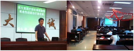 2012年5月8日因受福建泰寧縣中醫(yī)院的邀請,中國中西醫(yī)結(jié)合學(xué)會燒傷專業(yè)委員會常委兼秘書、《中國燒傷創(chuàng)瘍雜志》副總編輯、北京美寶燒傷創(chuàng)瘍研究所副所長、臨床部主任王洪生研究員趕往三明地區(qū)泰寧縣中醫(yī)院,晚上七點半在該院六樓會議室為該院的外科、糖尿病科、皮膚科等科室的醫(yī)生和部分護(hù)理部的人員共30余人進(jìn)行了“再生復(fù)原療法在燒傷及難愈性創(chuàng)瘍創(chuàng)面治療新進(jìn)展”的學(xué)術(shù)講座。