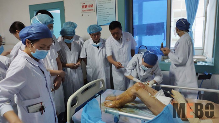 7月17日,受商丘市睢陽區(qū)中心醫(yī)院邀請,中國中西醫(yī)結合學會燒傷專業(yè)委員會委員、燒傷創(chuàng)瘍再生醫(yī)療技術資深專家、河南大學第一附屬醫(yī)院燒傷科主任醫(yī)師李繼洋教授到院會診,指導一例大面積重度燒傷患者的治療?;颊吣杲攀瑹齻娣e30%以上,大部分為深二度和三度燒傷。李繼洋教授翻閱病人病例,聽取病人目前情況,觀察患者頭面部、雙上肢及后背的燒傷創(chuàng)面,高度評價抗休克治療,肯定了馬文博主任帶領的外科團隊運用原位再生醫(yī)療技術(MEBT/MEBO)在該病例的規(guī)范治療取得的階段性成就,然后示范指導各燒傷部位創(chuàng)面耕耘、薄化的操作技巧,并對壞死組織給出了分期分批處理的意見。通過本次會診活動,商丘市睢陽區(qū)中心醫(yī)院綜合外科掌握了更多大面積重度燒傷患者的治療知識,為更好運用原位再生醫(yī)療技術救治商丘市區(qū)及周邊燒傷患者積累了更多的寶貴實戰(zhàn)經驗。