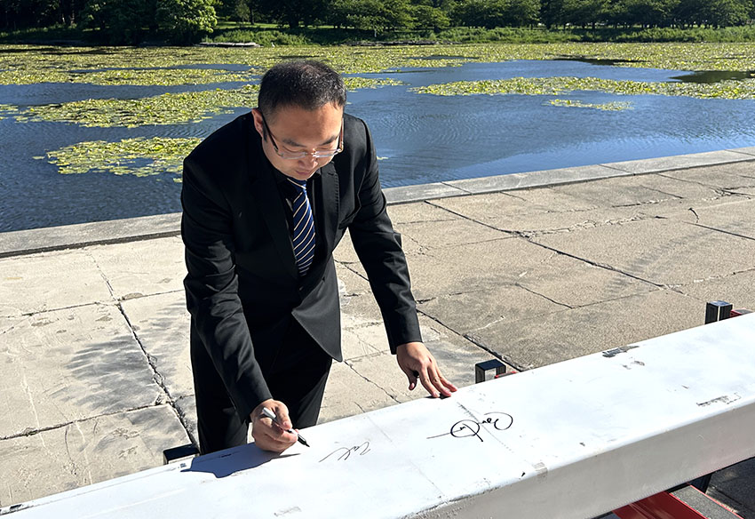 當(dāng)?shù)貢r(shí)間2024年6月10日,美寶集團(tuán)董事局主席徐鵬受邀在備受矚目的奧巴馬總統(tǒng)中心施工現(xiàn)場(chǎng)的頂樓橫梁上簽下了自己的名字,這條橫梁將被置放于奧巴馬總統(tǒng)中心的最高點(diǎn)——博物館大樓的“天空屋”內(nèi)。這是繼奧巴馬總統(tǒng)本人之后,第二位在這座即將崛起的綜合性建筑上留下永恒印記的貢獻(xiàn)者。