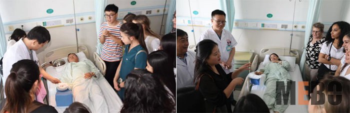 接著師生一行參觀了病房,醫(yī)生為學(xué)生們示范并講解了美寶濕潤(rùn)燒傷膏的用藥規(guī)范和治療創(chuàng)面的方法。