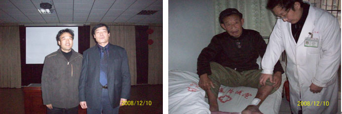 杜主任和中煤礦建總醫(yī)院楊嗣安院長合影                           任士海主任檢查應(yīng)用速愈貼治療的下肢潰瘍患者