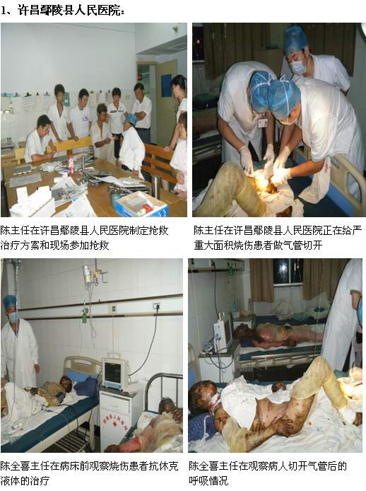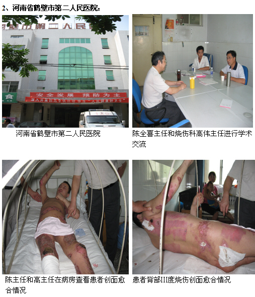 赤日炎炎似火燒,夏伏盛日溫度高。2010年7月11日至28日,中國(guó)中西醫(yī)結(jié)合燒傷專(zhuān)業(yè)委員會(huì)委員,全國(guó)特重病人搶救組專(zhuān)家,皮膚原位再生醫(yī)療技術(shù)推廣專(zhuān)家陳全喜主任別對(duì)河南省鄢陵縣人民醫(yī)院、河南省鶴壁市第二人民醫(yī)院、河南省滑縣第三人民醫(yī)院河南省許昌市地鐵骨科醫(yī)院的燒傷科進(jìn)行了會(huì)診,其中比較典型的病例如下:1、河南省鄢陵縣人民醫(yī)院2名火燒傷患者,燒傷面積均為96%TBSA以上的特重度燒傷患者;2、河南省鶴壁市第二人民醫(yī)院患者楊某,男,22歲,熱水泥燒傷,總燒傷面積為67%TBSA,均Ⅲ度燒傷創(chuàng)面;3、河南省滑縣第三人民醫(yī)院患者郭某,女,54歲,熱液燙傷,燒傷總面積為68%TBSA,雙下肢均為深Ⅲ度燒傷創(chuàng)面(肌腱外漏);4、河南省許昌市地鐵骨科醫(yī)院張某,男,38歲,外傷引發(fā)骨髓炎,住院已9個(gè)月,病情進(jìn)一步惡化。
