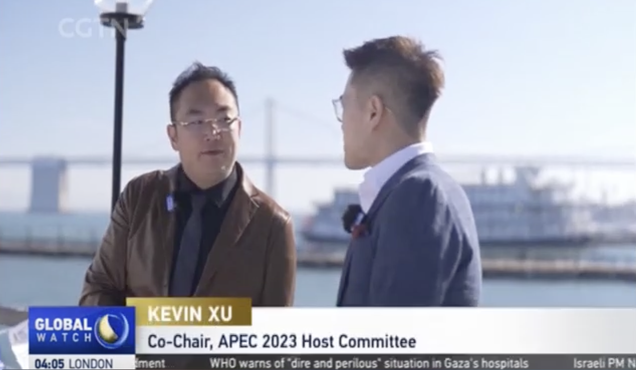 當(dāng)?shù)貢r間11月12日,美寶集團董事局主席、灣區(qū)委員會APEC 工作組主席、APEC2023籌委會聯(lián)合主席徐鵬在位于舊金山9號碼頭的Klamath渡船上接受CGTN采訪。始建于1925年的歷史悠久的Klamath號渡船現(xiàn)已修繕完成并停泊在舊金山海濱,它現(xiàn)在是舊金山灣區(qū)委員會的總部。