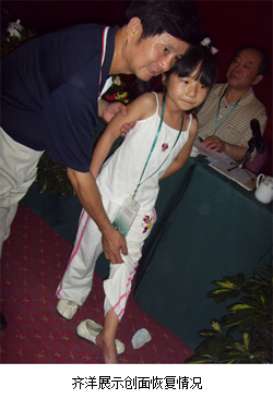 汶川地震的一名小患者,因下肢擠壓傷曾被診斷需要截肢治療,吳委員長得知后非常關(guān)心小患者的傷情,親自看望小患者,當(dāng)?shù)弥』颊邏粝氘?dāng)一位舞蹈演員時,囑咐醫(yī)務(wù)人員要盡量保住小患者的下肢,圓她做舞蹈家的一個夢想。經(jīng)用再生醫(yī)療技術(shù)治療后,保住了小患者的下肢,最終康復(fù)。