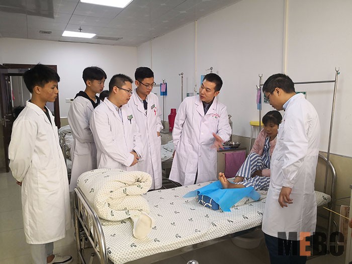 11月28日,應(yīng)廣西百色市中醫(yī)醫(yī)院外一科吳顯興主任邀請(qǐng),北京榮祥再生醫(yī)學(xué)研究所副所長(zhǎng)、再生生命醫(yī)療技術(shù)委員會(huì)副主任委員、糖尿病足首席專家王洪生教授給外一科醫(yī)護(hù)人員帶來(lái)了原位再生技術(shù)在難愈性創(chuàng)面修復(fù)新進(jìn)展的講座,并對(duì)一腳部碾壓傷肌腱外露患者和下肢動(dòng)脈閉塞潰瘍患者進(jìn)行了會(huì)診和現(xiàn)場(chǎng)換藥,讓科室醫(yī)護(hù)人員現(xiàn)場(chǎng)領(lǐng)略原位再生復(fù)原技術(shù)在難愈性創(chuàng)面的應(yīng)用和實(shí)踐。