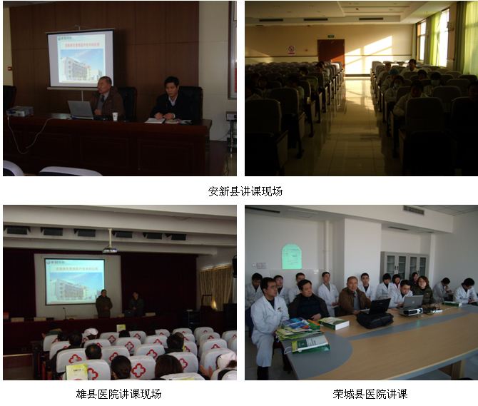 河北省安新縣、容城、雄縣地處京、津、石金三角地帶。華北平原最大的淡水湖泊—白洋淀就位于這三縣境內(nèi)。2011年1月,經(jīng)這三縣縣醫(yī)院領(lǐng)導(dǎo)邀請(qǐng),中國(guó)中西醫(yī)結(jié)合學(xué)會(huì)燒傷專業(yè)委員會(huì)常委、中國(guó)燒傷創(chuàng)瘍科技中心臨床部主任樊兆宗教授于2011年1月12—14日分別在這三個(gè)縣縣醫(yī)院會(huì)議室進(jìn)行了“原位再生醫(yī)療技術(shù)的臨床應(yīng)用”專題學(xué)術(shù)講座。參加這次培訓(xùn)的有安新縣縣醫(yī)院,容城縣醫(yī)院,雄縣縣醫(yī)院院長(zhǎng)各科室主任醫(yī)生護(hù)士共計(jì)150多人。