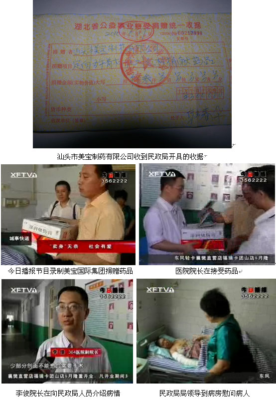 由于該欄目的收視率非常高,當(dāng)美寶國際集團(tuán)襄樊地區(qū)辦事處的劉平同志收看了此報(bào)道后,他在第一時間向駐湖北省區(qū)領(lǐng)導(dǎo)、醫(yī)藥集團(tuán)總裁楊智斌進(jìn)行了匯報(bào),美寶國際集團(tuán)的領(lǐng)導(dǎo)在得知情況后當(dāng)即作出指示,要求向劉洪林患者采取救助,并在必要之時派出專家組進(jìn)行會診救助,這些工作必需在24小時之內(nèi)完成。在接到領(lǐng)導(dǎo)的指示后,美寶國際集團(tuán)湖北辦事處主任黃彥勇帶領(lǐng)湖北辦事處所有工作人員帶著籌備好的藥物——美寶濕潤燒傷膏及美寶創(chuàng)瘍貼,冒著酷暑趕到了燒傷創(chuàng)瘍中心襄樊分中心為患者進(jìn)行了愛心捐贈。