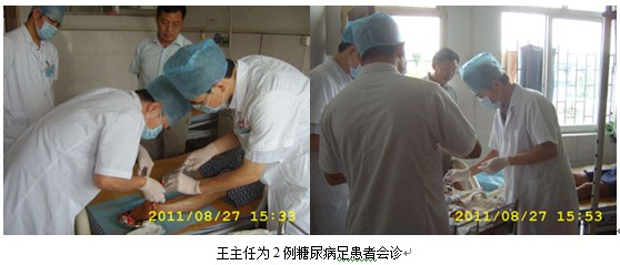 2011年8月27日下午三時,中國燒傷創(chuàng)瘍雜志副總編輯、中國中西醫(yī)結(jié)合學(xué)會燒傷專業(yè)委員會常委兼秘書、北京燒傷創(chuàng)瘍研究所副所長、臨床研究部主任王洪生研究員應(yīng)貴港市中醫(yī)院韋赤勇院長的邀請,在廣西田東縣人民醫(yī)院進行臨床學(xué)術(shù)交流后,王主任不辭辛苦從田東縣趕赴貴港市中醫(yī)醫(yī)院到為該院收治的2例糖尿病足病人會診,到達貴港市中醫(yī)醫(yī)院后,在韋赤勇院長陪同下,王主任深入該醫(yī)院創(chuàng)傷該科、燒傷創(chuàng)瘍科病區(qū),先后為2例糖尿病足患者會診,并親自為這2例病人做示范清創(chuàng)手術(shù),并在清創(chuàng)時講解糖尿病足創(chuàng)面處理要點,得到了該院韋院長、該科室主任楊柳明和主管醫(yī)生的高度認同。會診結(jié)束后,韋赤勇院長又與王主任就該院燒傷創(chuàng)瘍??平诤椭虚L期發(fā)展規(guī)劃進行了廣泛而深入的交流和溝通,韋院長表示一定要讓我國著名生命科學(xué)家、醫(yī)學(xué)家、人體再生復(fù)原科學(xué)的創(chuàng)立者徐榮祥教授創(chuàng)立的再生復(fù)原療法在該醫(yī)院開花結(jié)果,通過再生復(fù)原療法對糖尿病足等難愈性創(chuàng)面獨特的療效將該醫(yī)院的創(chuàng)傷外科、燒傷創(chuàng)瘍科打造成貴港市的優(yōu)勢、特色???,最后韋院長還表示將派一名醫(yī)生到國內(nèi)較為成熟的醫(yī)院去進修再生復(fù)原技術(shù),為打造難愈性創(chuàng)面優(yōu)勢專科盡快培養(yǎng)人才。