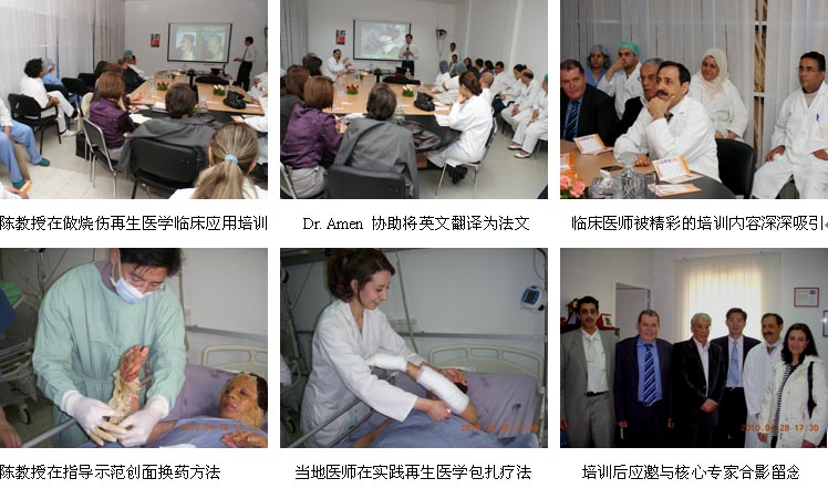 應突尼斯整形燒傷外科學會和多家醫(yī)院的邀請,中國燒傷創(chuàng)瘍科技中心臨床部主任、北京榮祥再生醫(yī)學研究所副所長、北京中西醫(yī)結合學會燒傷專業(yè)委員會副主任委員、中國燒傷創(chuàng)瘍雜志社副社長陳永翀教授于2010年4月26日至30日來到了地處非洲北部的突尼斯,參加了全國燒傷整形學術年會并到多家醫(yī)院進行培訓演講、學術交流、到燒傷中心示范指導燒傷創(chuàng)瘍病例的治療等,很受當?shù)氐尼t(yī)師、護士和患者的歡迎。在短短的4天的時間里,成功參加了國家級學術交流會議并做主題演講,來自全國的燒傷、整形和創(chuàng)傷外科專家35人出席了會議,收到較好的學術推廣、規(guī)范臨床技術的效果;成功舉辦市級培訓班1期,培訓醫(yī)護人員50余名;舉辦院內(nèi)培訓班2期,培訓醫(yī)護人員40余名;培訓經(jīng)銷商的醫(yī)療開發(fā)人員6名;會診、指導2例燒傷患者的治療和5名創(chuàng)瘍患者的治療。實現(xiàn)了較好的開發(fā)效果,現(xiàn)以圖片的方式做一個簡報。